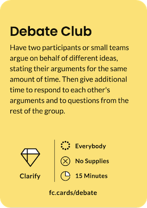 - Optionally, after identifying participants, give them time in small groups to refine their argument