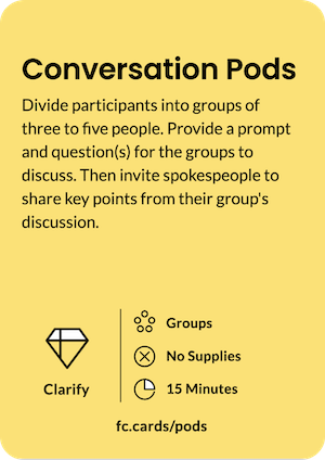 In Conversation Pods, have the small groups discuss before moving to the large group discussion.