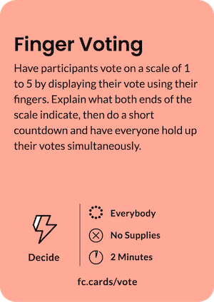 Finger Voting is one of our favorite Facilitator Cards! Check out this video for more about how we use Finger Voting to get a read on our groups.